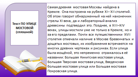 Это учитывалось при составлении итоговой работы. Для неё был выбран не сплошной текст – из открытых источников сети Интернет и фрагмент художественного текста, к которому прилагался