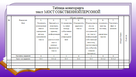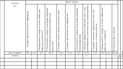 Далее составляется таблица оценивания, куда вносятся результаты каждого обучающегося.