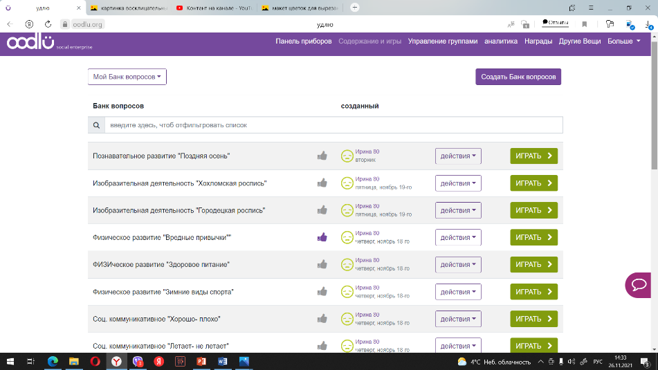Эффективность | Педагогическая эффективность Комплекса заключается в том, что объемдидактическогоматериала структурированпо пяти образовательным областям,чтопозволяетоблегчить переход к учебным задачам, сделать его постепенным и эффективным средством развития познавательного интереса. Обучаясь поданномуучебно-методическомукомплексу цифровых дидактических игр,обучающиесявусловиях совместной и самостоятельной деятельности успешно решают поставленные задачи по различным образовательным областям. Комплекс может быть использован в дистанционном формате обучения, что позволяет сделать обучение непрерывным. При этом осуществляется прямая связь педагога непосредственно с каждым ребенком, что позволяет сделать процесс обучения более открытым и свободным. Еще одним показателем эффективности является автоматизация мониторинга освоения программы детьми для формирования индивидуальных образовательных траекторий и анализа качества образовательных услуг.Работой обучающихся можно управлять после создания виртуальной группы. Обучающиеся создают свои аккаунты и заходят в группу, по указанному коду,выбирают образовательную область и банк вопросов на заданную тему. Для прохождения заданной темы у ребенка есть возможность выбрать одну из 20 игр, через которую хочет выполнить задание. За каждое правильно выбранное задание ребенок получает доступ к игре и бонус в видеoodles манет. В конце пройденного задания, обучающийся может увидеть собственный рейтинг. Интеллектуальная система автоматизирует для педагога анализ выполнения заданий, который он сможет отследить в разделе Аналитика. Интерактивная платформа позволяет, с одной стороны, получить информацию о тех детях, которые не проявляют активность, самостоятельность, инициативу в коллективе сверстников, но при этом играют, рассказывают, демонстрируют свои достижения и способности дома; с другой стороны, включить родителей в образовательный процесс как полноценных участников. Образовательная платформа Oodlű актуальна в работаете с детьми, которым сложно удержать внимание и которым необходимы игры в активностях. |
