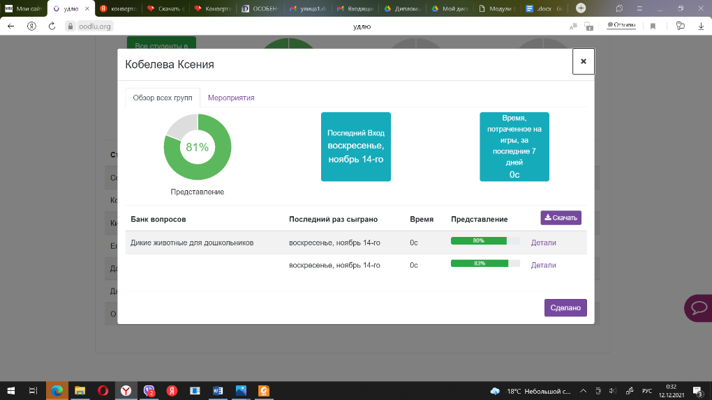 Результативность | Комплект используется в учебной деятельности на протяжении двух лет. Результатом использования Комплекса «Лидерленд» в образовательной деятельности стало участие детей в конкурсах и фестивалях различного уровня: Муниципальный Городской конкурс семейных творческих работ «Новогоднее чудо» - диплом победителя 3 участника. Региональный Региональный конкурс «День победы глазами наших детей» - сертификат 2 участника. Межмуниципальный конкурс выразительного чтения стихотворений «Мамы как пуговки: на них все держится» посвященного дню матери- лауреат третьей степени- 1 участник. Всероссийский Всероссийский творческий конкурс «Зимние чудеса» - диплом победителя 3 участника. Всероссийский конкурс «Доутесса» блиц олимпиада «Времена года» познавательное развитие диплом победителя 1 участник. Всероссийская конкурс «Время знаний» викторина «Как зимуют звери в лесу» диплом победителя 1 участник. Опыт работы по реализации Комплекса представлен на различных уровнях: Муниципальный Методический мост «Конструирование эффективного учебного занятия в ДОУ с использованием возможностей ЦОС. Каким оно должно быть?». Кластер: Пространство актуального опыта “Современное занятие в ДОУ”. Тема выступления «Интерактивная платформа «OODLU» - шаг к созданию цифровой развивающей образовательной среды ДОО». Участник стажировочной площадки Сетевого университета повышения квалификации по образовательному онлайн- модулю «Интерактивные формы взаимодействия с родителями/ законными представителями воспитанников как одно из условий реализации ФГОС ДО» Тьютор стажировочной площадки Сетевого университета повышения квалификации педагогических работников г. Черемхово по образовательному модулю «Управление качеством образования в дошкольной образовательной организации» Призер конкурса гейм-трейлеров и кейс-трейлеров на онлайн-фестивале методических идей в рамках реализации муниципального проекта «Технологии цифрового образования». Всероссийский Всероссийская научно практическая- конференция (с международным участием) «Инновационная деятельность педагога дошкольного образования в условиях реализации образовательного и профессионального стандартов» Научно- практический семинар «От идей к качеству образования» (открытая площадка педагогических инициатив передового педагогического опыта» Победитель во II-ом всероссийском конкурсе «ИКТ- компетентность педагога в современном образовании». |
