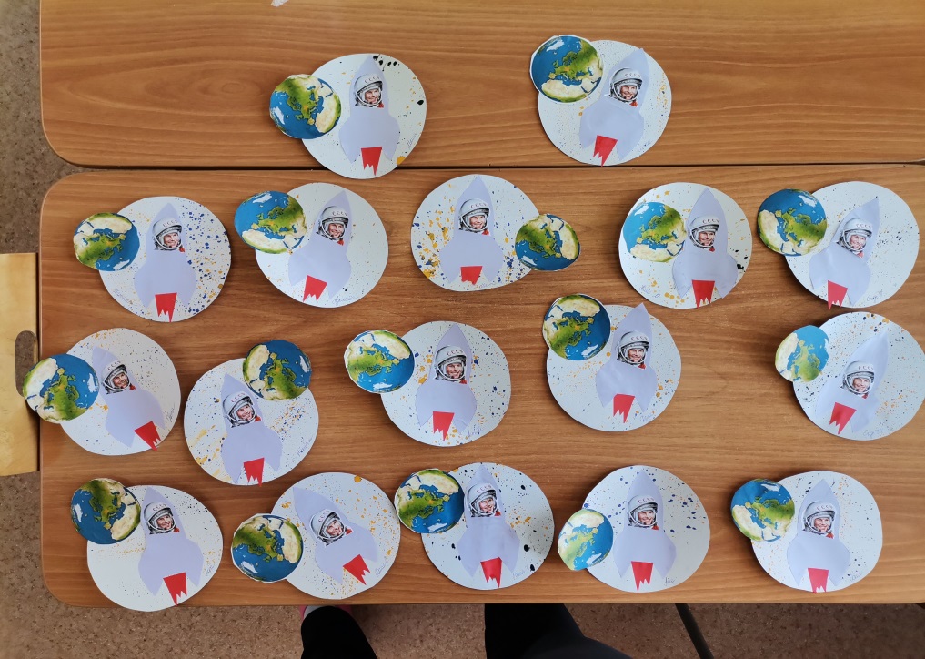 - иллюстрационный материал с изображением планет Солнечной системы, космонавта Юрия Гагарина, собак Белки и Стрелки, искусственного спутника и ракеты;