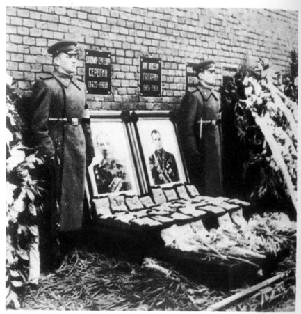 Урны с прахом Гагарина и Серёгина захоронены рядом с Кремлёвской стеной.