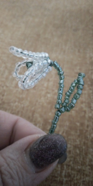 Складываем концы проволоки вместе и набираем 1 бисерину. Листик готов.