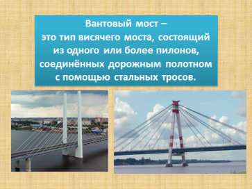 Вантовый – это тип висячего моста, состоящий из одного или более пилонов, соединённых дорожным полотном с помощью стальных тросов.
