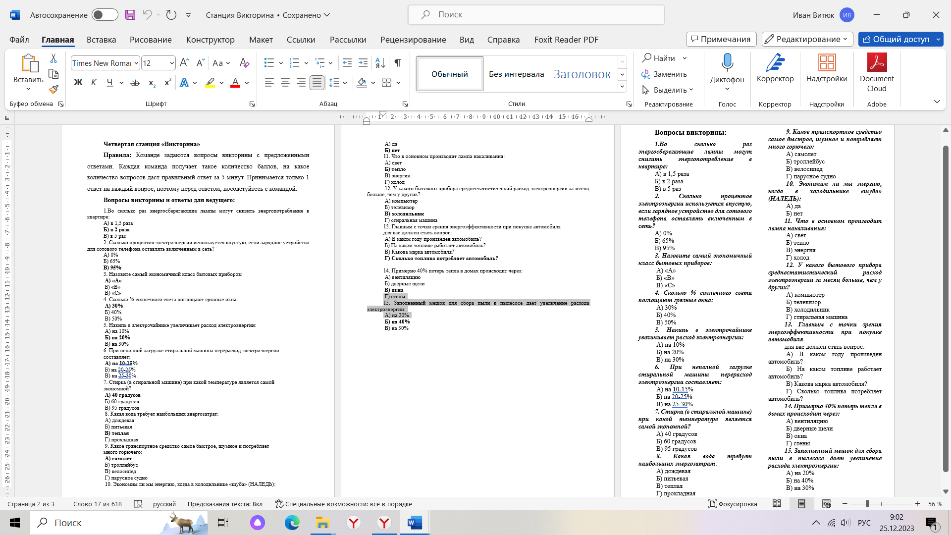 Правила: Команде задаются вопросы викторины с предложенными ответами (Приложение 6). Каждая команда получает такое количество баллов, на какое количество вопросов даст правильный ответ за 5 минут. Принимается только 1 ответ на каждый вопрос, поэтому перед ответом, посоветуйтесь с командой.