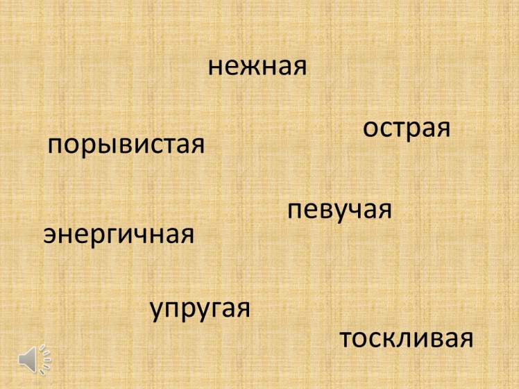 Послушайте ещё раз и выберите слова, которые больше подходят к характеру мелодии мазурки.