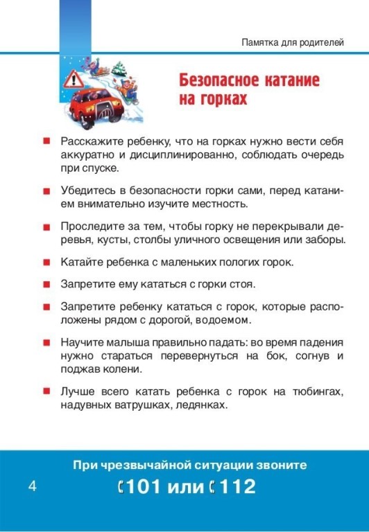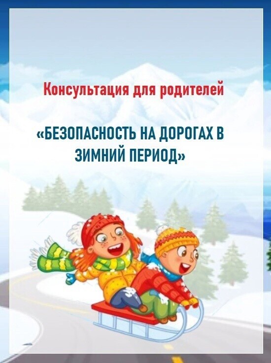 Консультации для родителей: «Безопасность зимой», «Правила безовасной прогулки», «Безопасное катание на горках», «Правила безопасного поведения при гололёде», «Правила безопасного поведения на льду», «Первая помощь при обморожении и переохлаждении», «Безопасность при катании на санках».