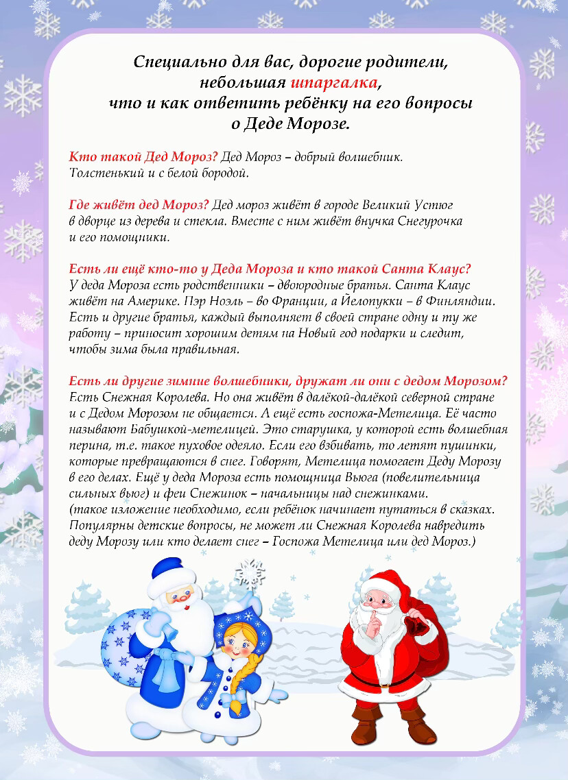 Папки – пердвижки «Дед Мороз», «Безопасность на дорогах в зимний период».