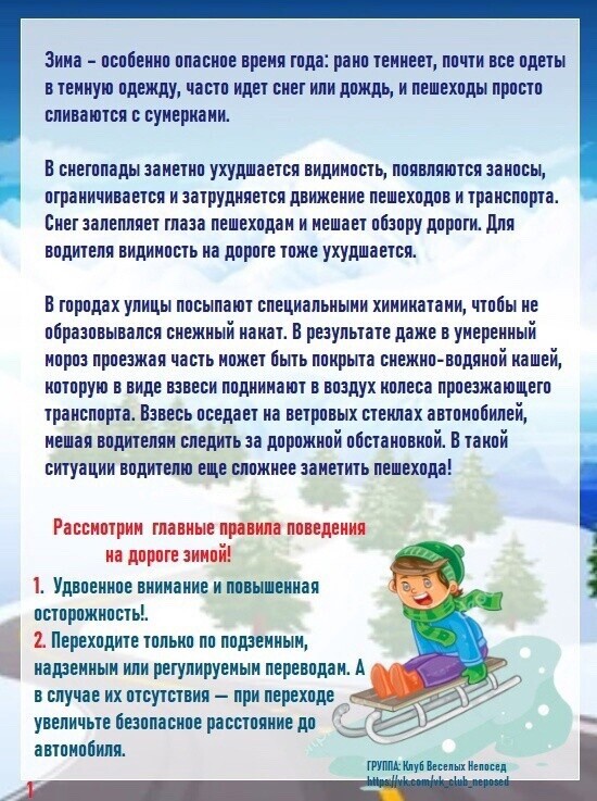 формировать представление о безопасном поведении зимой;