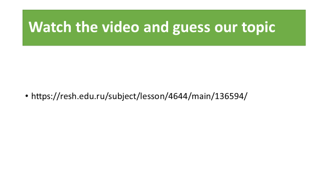 Мотивационно – целевой этап 5 мин. | - вызвать познавательный интерес к проблеме; - организовать самостоятельное формулирование проблемы и постановку цели | Создание ситуации занимательности (использование презентации- слайд 1) | Фронтальная | 1.Здороваетсясучащимися. (Good morning, students! Nice to see you all!) Показывает фотографию (слайд 1), предлагает подобрать слова, чтобы её описать. Проситзаписатьслованадоске. (Look at the picture and make a word web to describe it. Writethemontheblackboard,please.) 2. Предлагает посмотреть небольшое видео и определить тему урока (https://resh.edu.ru/subject/lesson/4644/main/136594/). (Watch a small video and try to guess our today’s topic).Просмотр видео с 14 секунды до 1:19 минут. Подводитктемеурока. What are we going to talk about today? | 1. Здороваются с учителем в ответ, (Hello,teacher!) Записывают слова на доске, составляют предложения с ними, чтобы описать картинку. 2.Смотрятвидео,определяюттемуурока (We are going to talk about health and being healthy). | Познавательные УУД: сформулировать познавательную цель. Регулятивные УУД: определять цели учебной деятельности. Личностные УУД: осознавать необходимость применения усвоенного содержания, проявлять интерес к новому содержанию. Предметные УД: - воспринимать речь собеседника; -поддерживать беседу на заданную тему; -воспринимать и анализировать речь на слух. |