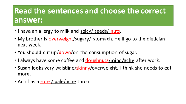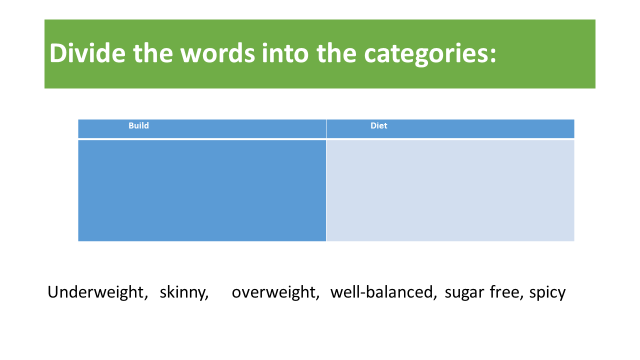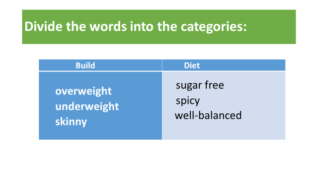 Underweight, skinny, overweight, well-balanced, sugar free, spicy