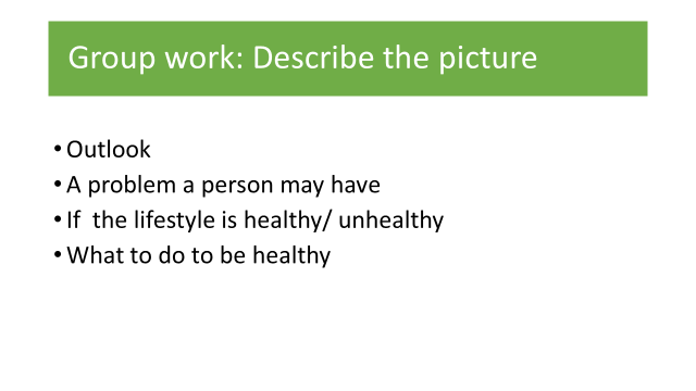 Pair work: Make a conclusion and talk with your classmate about yourself: if you are a healthy person or not: