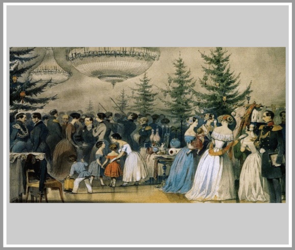 Вслед за правящей фамилией ёлки стали устраивать дворянские семьи. Обычай быстро распространился, и в 1852 году устроили первую общественную ёлку.
