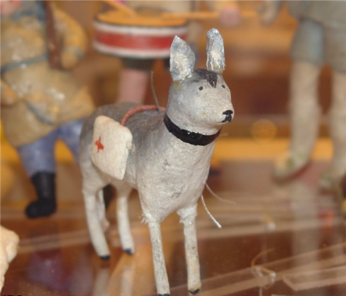 Во время Великой Отечественной войны на фронтах елки украшали фигурками, которые мастерили из погон, бинтов, носочков. Игрушки также выпускались, в ограниченном количестве, конечно. Украшение елки к Новому году было обязательным — этот обряд напоминал о мирной жизни и придавал сил надеяться на скорую победу. «Военные» елки украшались «солдатами», «танками», «пистолетами», «собаками-санитарами»; [1, c.102]