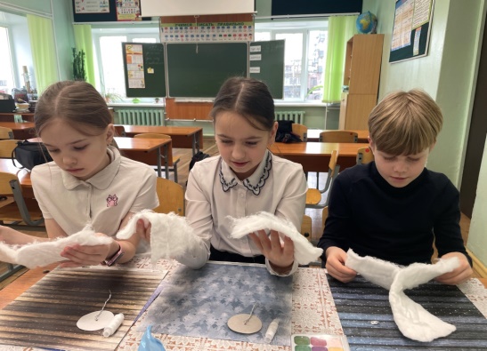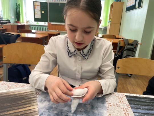 Берем вату и разбираем на слои. Вот что получается.(см. Приложение 6)