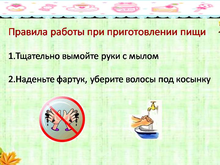 Тема: Правила гигиены при приготовлении пищи.
