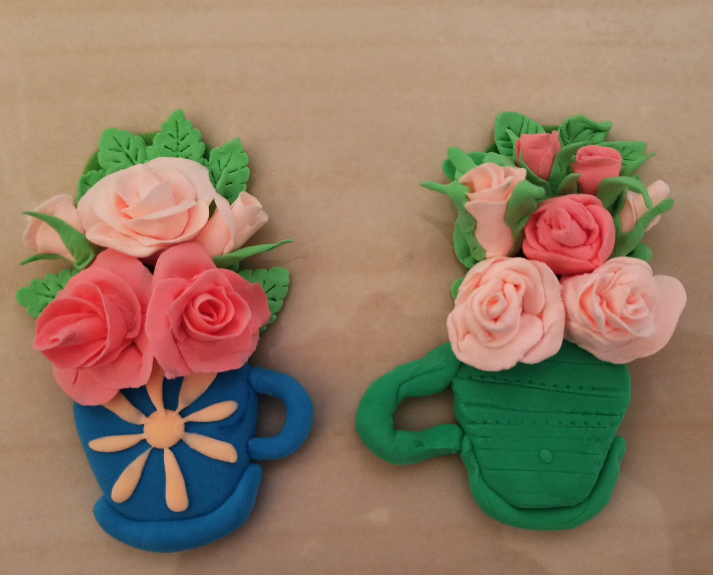 Конспект МК по лепке с использованием нейро упражнений: Магнит (брошь) «Чашка с розами» из полимерной глины.