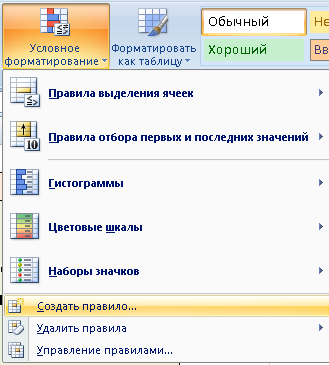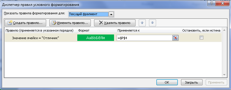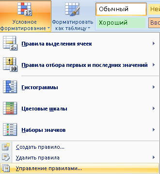 Далее выбираете Управлениями правилами (так же в ячейке Р4).