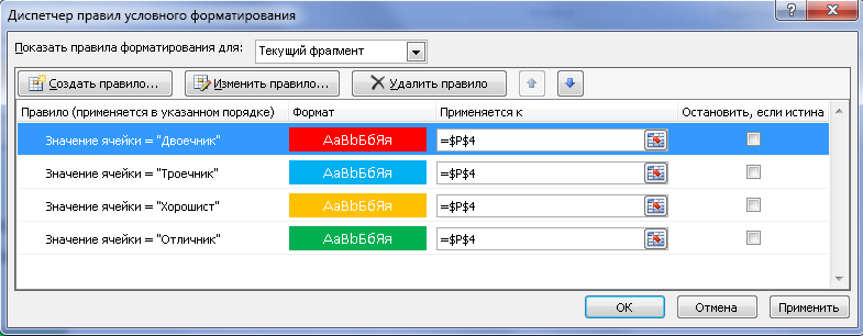 Нажмите "Создать правило" и делайте по алгоритму, описанному выше, выбрав другой цвет для Хорошиста, Троечника и Двоечника.