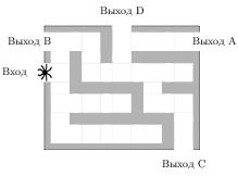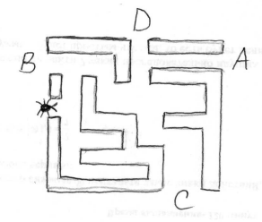 215. На рисунке изображён лабиринт. Паук заползает в лабиринт в точке «Вход». Развернуться и ползти назад паук не может. На каждом разветвлении паук выбирает путь, по которому ещё не полз. Считая выбор дальнейшего пути случайным, определите, с какой вероятностью паук придёт к выходу D.