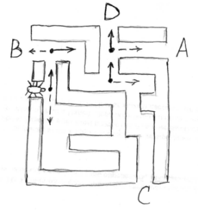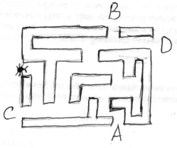 192. На рисунке изображён лабиринт. Паук заползает в лабиринт в точке «Вход». Развернуться и ползти назад паук не может. На каждом разветвлении паук выбирает путь, по которому ещё не полз. Считая выбор дальнейшего пути случайным, определите, с какой вероятностью паук придёт к выходу А.