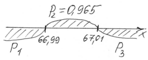 213. При изготовлении подшипников диаметром 66 мм вероятность того, что диаметр будет отличаться от заданного не больше, чем на 0,01 мм, равна 0,985. Найдите вероятность того, что случайный подшипник будет иметь диаметр меньше, чем 65,99 мм, или больше, чем 66,01 мм. (Ответ: 0,015)