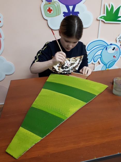 -Раскрашиваем ствол коричневой краской и готовимся вырезать украшения для ёлочки: