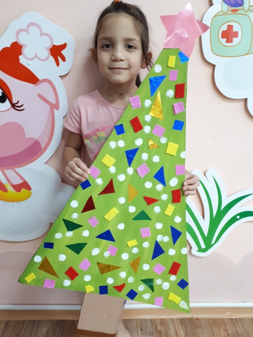 -Получилась очень красивая ёлочка! Любуемся!