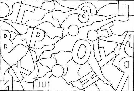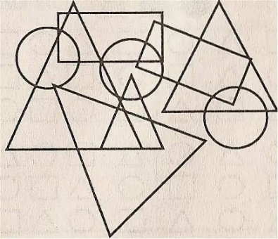 Ведущийпредъявляет по очереди карточки и просит найти спрятанные в них геометрические фигуры, цифры или буквы, назвать их и обвести цветными карандашами.