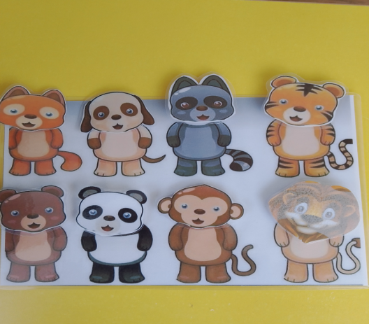 Ход игры: Подобрать каждому животному картинку с изображением мордочки определенного окраса. Но можно и пофантазировать и попробовать поменять мордочки местами. Получится интересная игра