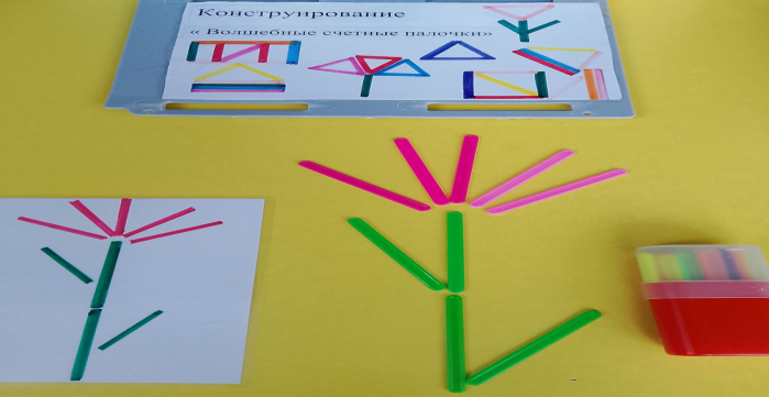 Дидактическое пособие по конструированию с помощью счетных палочек.