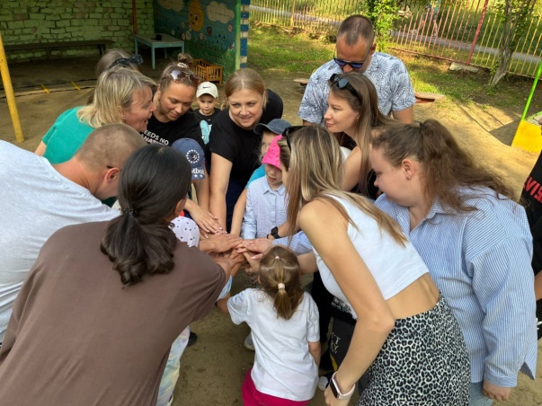 6.Итог мероприятия. Все участники приглашаются в центр участка и вытягивают правую руку вперед. Строят «башню» со словами «Раз, два, три, четыре, пять, скоро встретимся опять!».