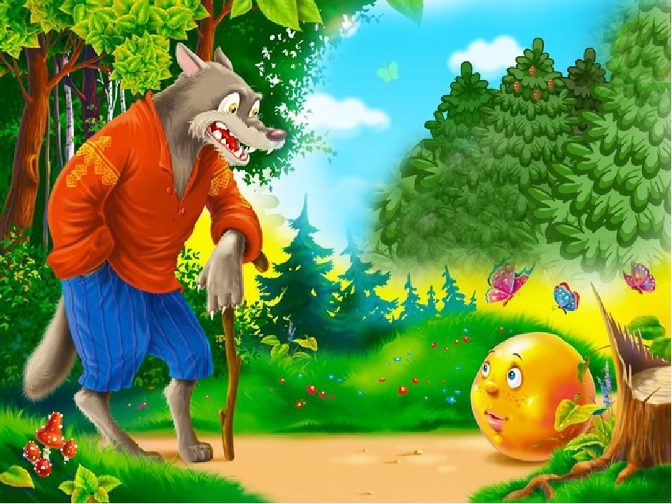 Катиться солнце по небу, а Колобок по лесной тропинке. Навстречу ему Серый Волк.