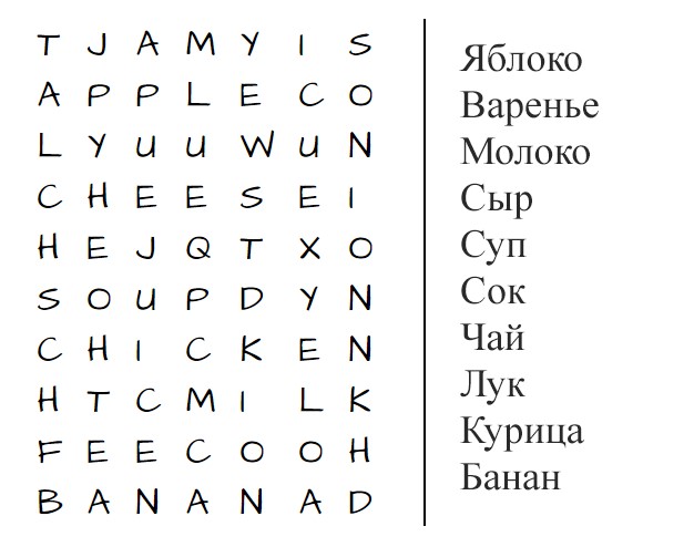 7. Посмотрите, пожалуйста на доску. Необходимо заполнить пропуски в предложениях формами глагола «tobe» is, are,am«Заполни пропуски формами гл. «tobe» is,are, am.Та команда, которая быстро и правильно справиться с заданием- получит 1 балл. 1.I… ten. 2. You….from England. 3. Bob …strong. 4. Kate ….pretty. 5.It …fat. 6. We…big. 8. «Drawing» (Рисование). Задача каждой команды нарисовать картинку и раскрасить ее нужным цветом. У каждой команды будут разные тексты с описанием картинки. В этом конкурсе оценивается соответствие рисунка тексту задания. Лучшаякомандаполучаетбалл. Команда 1 1) I am a cat. I am black and white. I have got big blue eyes and a very small pink nose. I like milk and fish. (Я кошка. Я черно-белая. У меня большие голубые глаза и очень маленький розовый нос. Я люблю молоко и рыбу.) Команда 2 2)Iamadog. I am brown. I have got long ears and big white teeth. I have got a short tail. I like meat and milk. (Я собака. Я коричневая. У меня длинные уши и большие белые зубы. У меня короткий хвост. Я люблю мясо и молоко.) 9. «Cooking» (Кулинария). Кто любит пиццу? Мы сейчас будем с вами пиццемейкерами. Кто такие пиццемейкеры? Это те люди, которые готовят пиццу! (Doyoulikeapizza?) Задача команд – приготовить пиццу из указанных ингредиентов. Команды получают бумажные основы (ввиде пиццы) из ватмана для пиццы, продукты и клей и готовят пиццу по рецепту. Обратите внимание, что рецепты приготовления пиццы у команд разные! Итак, первый рецепт для первой команды. CARD №1“Make a pizza” You have: cheese, sausages, ham, tomatoes, pepper, olives. Второй рецепт для первой команды. CARD №2“Make a pizza” You have: cheese, chicken, mushrooms, tomatoes, onion, olives. В конце проверяем приготовлены ли пиццы по рецепту. Кто правильно приготовил пиццу. Тот получает 1 балл. 10. «Vocabulary» (Словарный запас). Командам необходимо распределить слова по столбикам таблицы в соответствии с темой. Та команда, которая первая и без ошибок сделает задание получит 1 балл. CARD №1 “Put the words into the right column” Bananas, tomatoes, oranges, apples, coffee, cheese, carrots, lemon, potatoes, milk, tea, fish, meat, Coke, rice, porridge, lemonade, egg, sausage, bread.