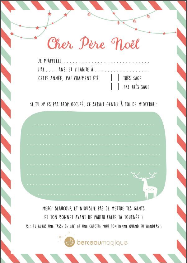 Mon cher Papa Noël, Je t’écris cette lettre pour te dire ce que j'aimerais recevoir à Noël… J'ai été très sage avec Maman et Papa, promis !