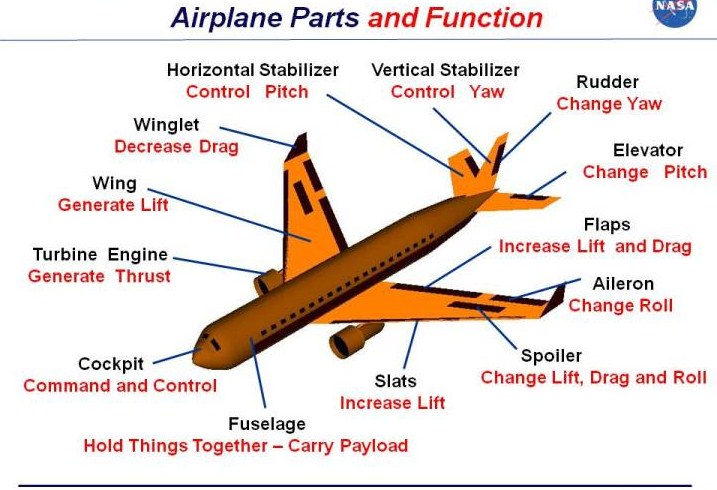 3. aeroplane: cockpit, wing, seatbelt, deckchair