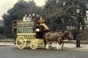 2.Horse-drawn hackney coaches could be hired for journeys across town.