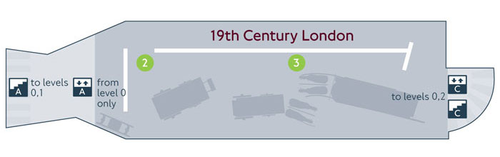 You are a tour guideof the London Transport Museum who shows “19th century London”