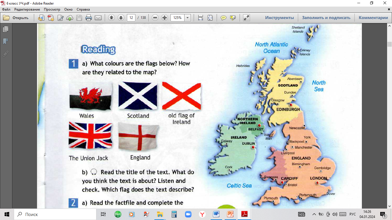 3. Make up the country from the pieces and name its parts. (Карту разрезать, участники должны сложить ее и назвать части страны, а также саму страну. Если возникнут затруднения, дать подсказку.) (Приложение 2)