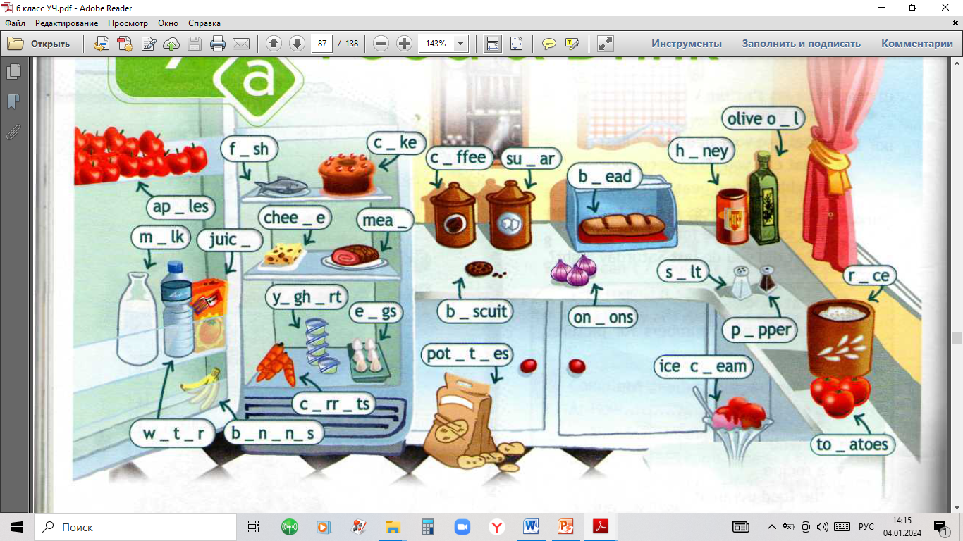 8. | Countable/uncountable Распределяем картинки по группам «исчисляемое/неисчисляемое». Назвать картинки, вставить в слова пропущенные буквы. | Если возникают затруднения, напоминаем, что исчисляемые существительные можно сосчитать. К неисчисляемым существительным относятся материалы, жидкости, вещества. |
