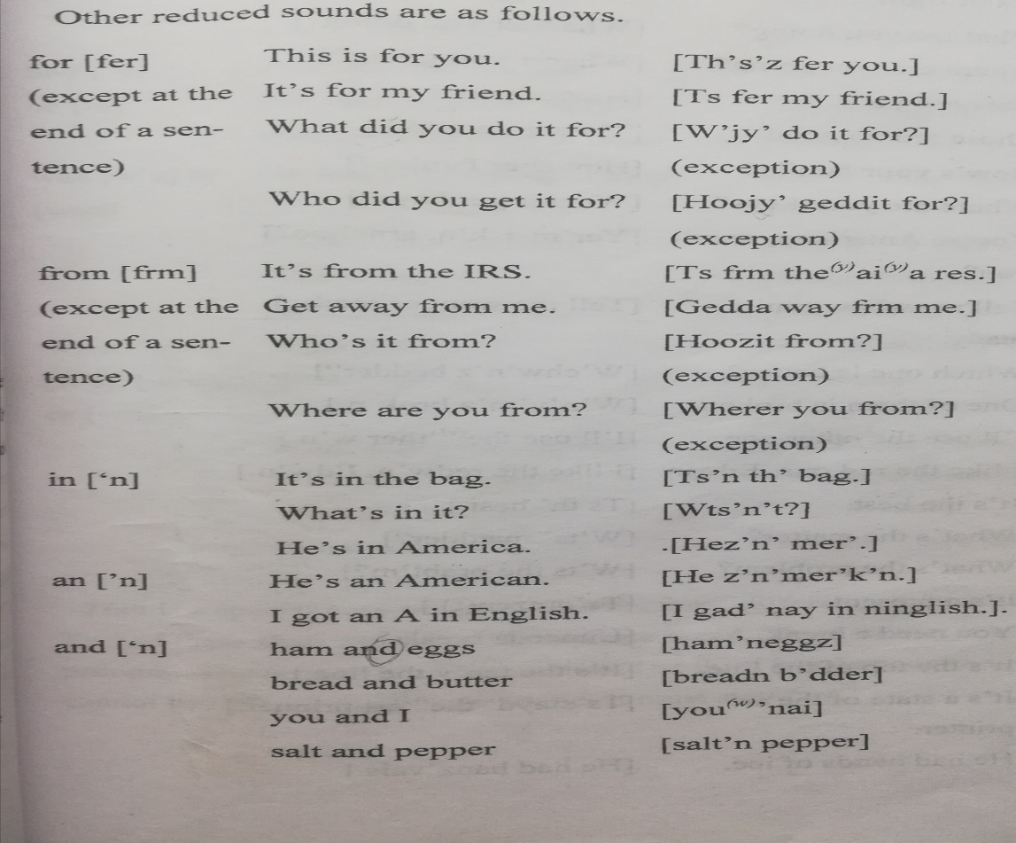 Этот вид упражнений помогает обучающимся произносить отдельные слова и фразы в потоке речи на американский разговорный манер. Данный вид разминки позволяет речи ребенка в итоге «зазвучать» приближенно к произношению носителя языка («слитно» с ускорением темпа речи).