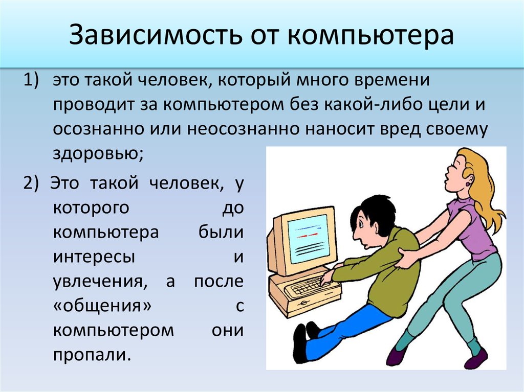 В эпоху бурного развития информационных технологий компьютер воспринимается как неотъемлемая часть нашей жизни. Большинство современных людей вообще не представляют себе жизни без компьютера. Хорошо это или плохо? Что именно привлекает человека в сети? Не является ли это интернет-зависимостью? Не оказывает ли интернет-зависимость влияние на здоровье?
