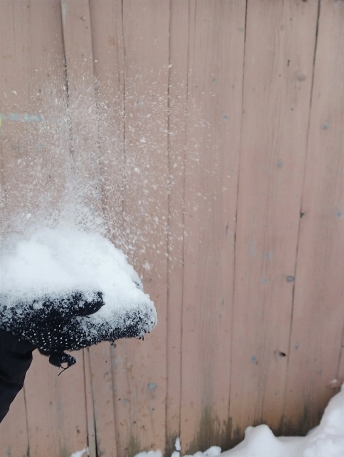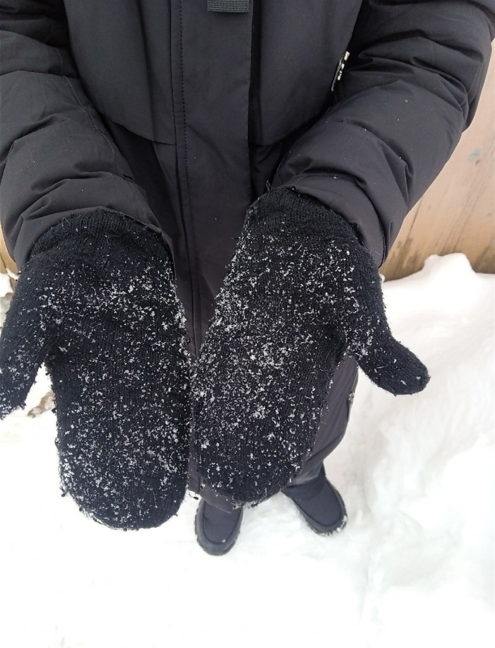 Начнем наше изучение сугроба. Для начала сравним снег снаружи и внутри. Я заметила, что снег снаружи мягкий и достаточно рыхлый. При детальном изучении мы можем рассмотреть каждую снежинку, их достаточно хорошо видно, они лежат как будто по отдельности. При разрезе сугроба можно заметить, что снег становится достаточно плотным и твердым. Можно заметить, что снежинки слиплись между собой и создали плотный каркас, именно поэтому сугроб внутри твердый. Снег внутри сугроба становится плотным из-за изменения температуры в течение зимнего периода и спрессовывается под собственной тяжестью. Внутри сугроба мы не увидели ни одну снежинку. Там даже в самом чистом месте снег превратился в крупицы.