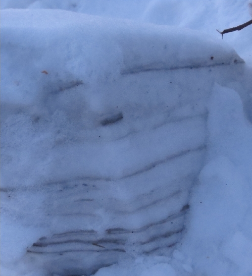 Слои снега в сугробе. Фото.