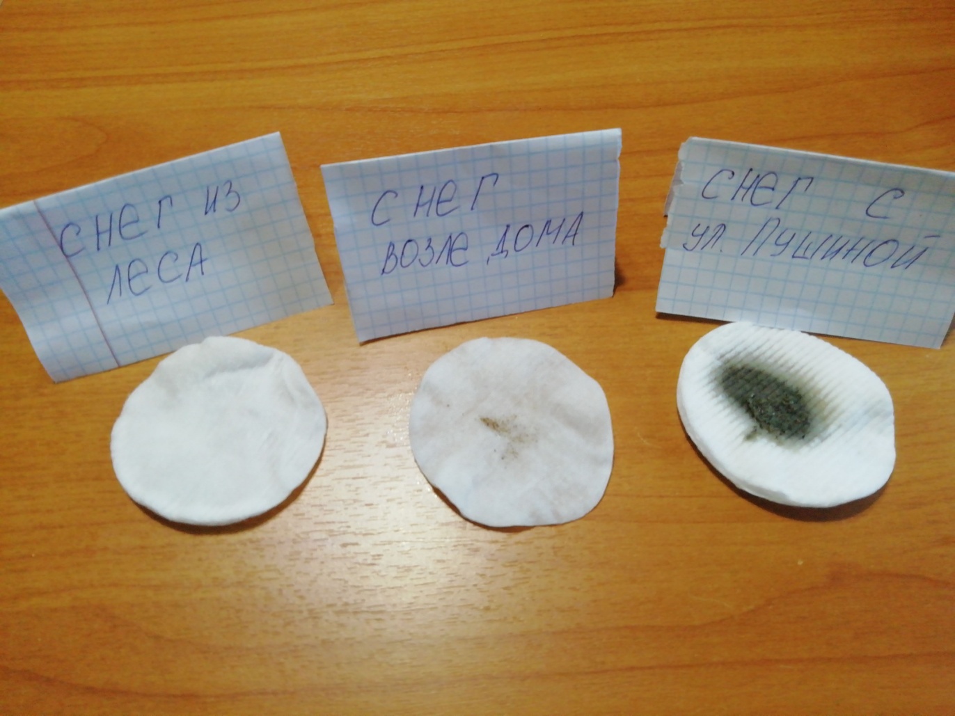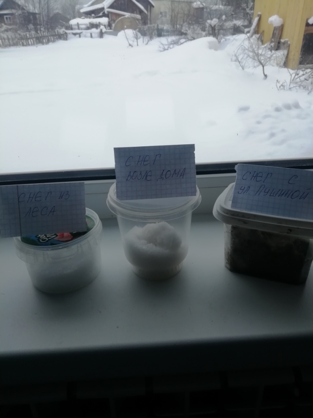 Образцы снега. Эксперимент. Фото.
