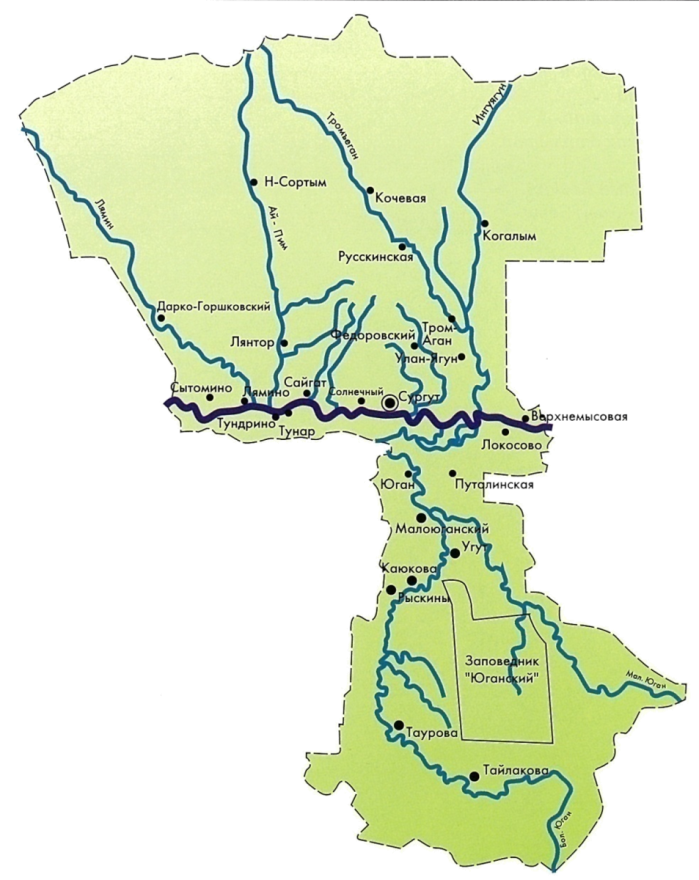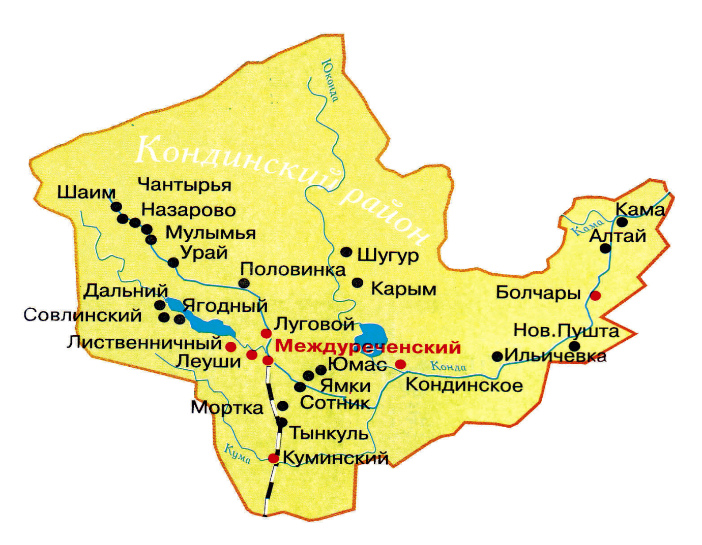 Кондинский район со всех сторон окружает территорию города окружного значения Урая.