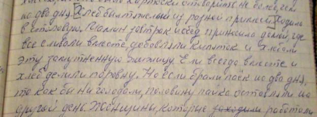 Мы Тамарой Семеновной провели много драгоценных минут в общении, вспоминая ее маму и бабушку. Я держала в своих руках тетрадку, исписанную человеком, прошедшим через ад. Видела документы и фотографии, бережно хранимые семьей. Думала о том, как это страшно – постоянно испытывать голод, бояться за жизнь самых родных тебе людей, видеть смерть и разруху. И все это в 15 лет. Сколько нужно мужества, чтобы пережить такое… Я задавала себе вопрос, но так и не смогла ответить на него: «Смогла бы я пережить такое?»