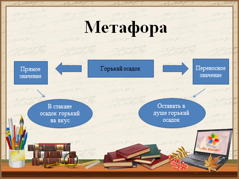 8. «Вот она – метафора!» (В разделе «Лексика» трудной темой является изучение изобразительно-выразительных средств языка и в частности метафоры, поэтому использую сопоставление прямого и переносного значения слова как в словосочетаниях «горький осадок», «приподнять завесу», так и в слове «дворники»)
