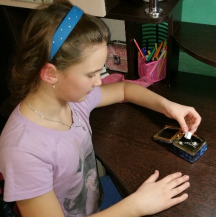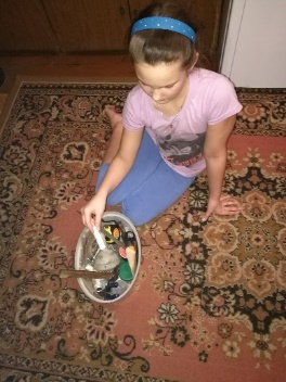 Также из старых кусков мела мы изготовили новые цветные мелки с применением пищевых красителей и воды.