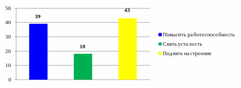 43% участников анкетирования употребляя энергетики, пытаются поднять настроение.